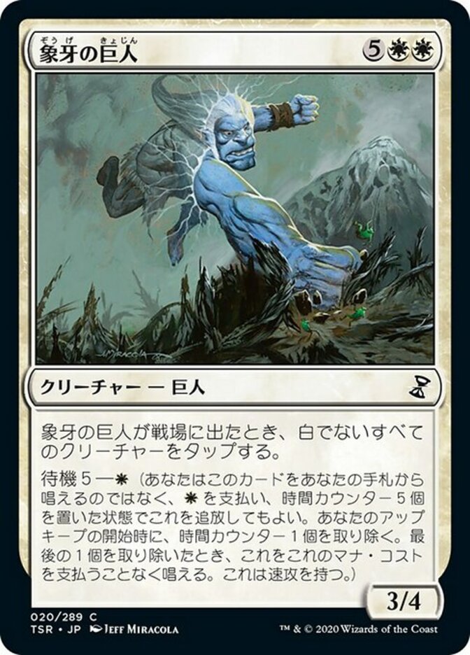 | Rules | When Ivory Giant enters the battlefield, tap all nonwhite creatures. Suspend 5— (Rather than cast this card from your hand, you may pay and exile it with five time counters on it. At the beginning of your upkeep, remove a time counter. When the last is removed, cast it without paying its mana cost. It has haste.) |