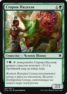 | Rules | , , Sacrifice Ixalli's Keeper: Target creature gets +5/+5 and gains trample until end of turn. |
