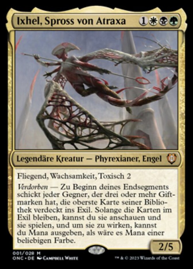 | Rules | Flying, vigilance, toxic 2 Corrupted — At the beginning of your end step, each opponent who has three or more poison counters exiles the top card of their library face down. You may look at and play those cards for as long as they remain exiled, and you may spend many as though it were mana of any color to cast those spells. |