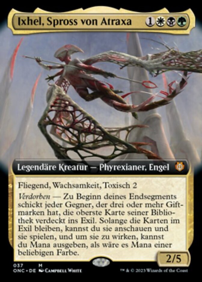 | Rules | Flying, vigilance, toxic 2 Corrupted — At the beginning of your end step, each opponent who has three or more poison counters exiles the top card of their library face down. You may look at and play those cards for as long as they remain exiled, and you may spend many as though it were mana of any color to cast those spells. |