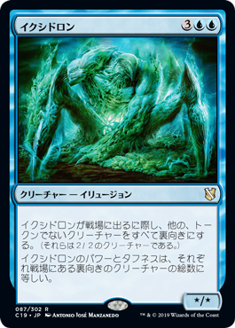 | Rules | As Ixidron enters the battlefield, turn all other nontoken creatures face down. (They're 2/2 creatures.) Ixidron's power and toughness are each equal to the number of face-down creatures on the battlefield. |