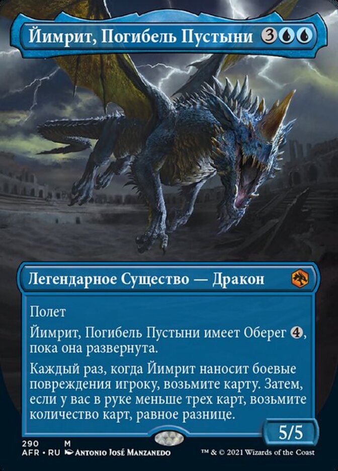 | Rules | Flying Iymrith, Desert Doom has ward as long as it's untapped. Whenever Iymrith deals combat damage to a player, draw a card. Then if you have fewer than three cards in hand, draw cards equal to the difference. |