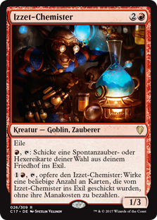 | Rules | Haste , : Exile target instant or sorcery card from your graveyard. , , Sacrifice Izzet Chemister: Cast any number of cards exiled with Izzet Chemister without paying their mana costs. |