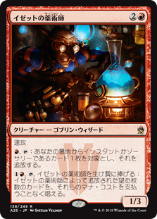 | Rules | Haste , : Exile target instant or sorcery card from your graveyard. , , Sacrifice Izzet Chemister: Cast any number of cards exiled with Izzet Chemister without paying their mana costs. |