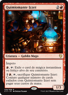 | Rules | Haste , : Exile target instant or sorcery card from your graveyard. , , Sacrifice Izzet Chemister: Cast any number of cards exiled with Izzet Chemister without paying their mana costs. |