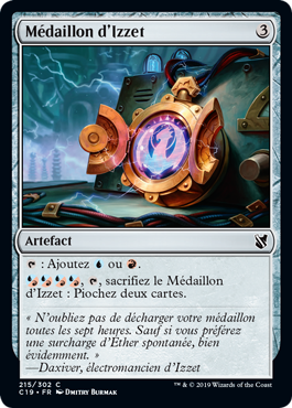 | Rules | : Add or . , , Sacrifice Izzet Locket: Draw two cards. |