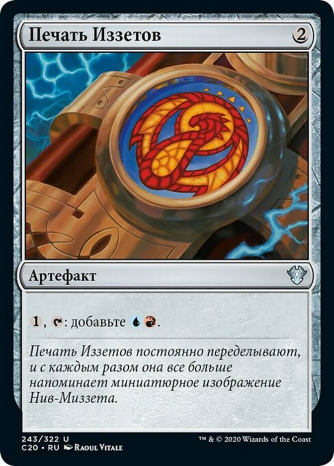 | Flavor | The Izzet signet is redesigned often, each time becoming closer to a vanity portrait of Niv-Mizzet. |