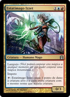 | Rules | Flash (You may cast this spell any time you could cast an instant.) Haste : Izzet Staticaster deals 1 damage to target creature and each other creature with the same name as that creature. |