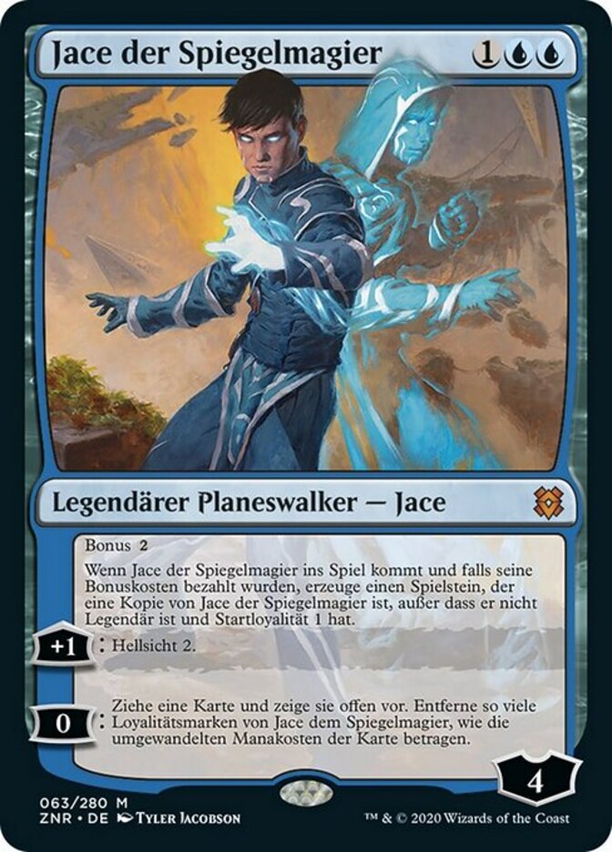 | Rules | Kicker When Jace, Mirror Mage enters the battlefield, if Jace was kicked, create a token that's a copy of Jace, Mirror Mage, except it's not legendary and its starting loyalty is 1. +1: Scry 2. 0: Draw a card and reveal it. Remove a number of loyalty counters equal to that card's mana value from Jace, Mirror Mage. |