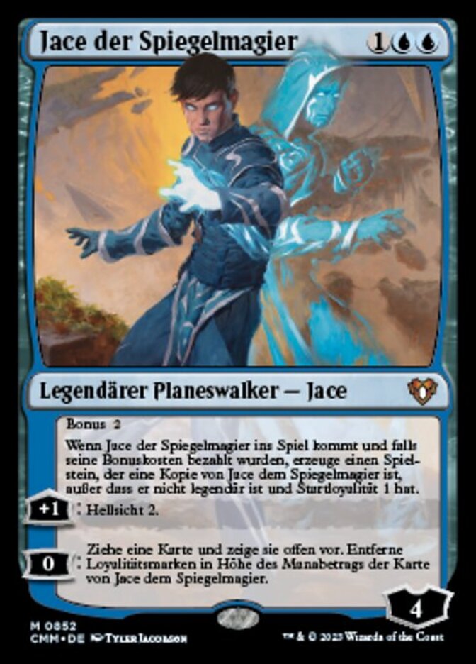 | Rules | Kicker When Jace, Mirror Mage enters the battlefield, if Jace was kicked, create a token that's a copy of Jace, Mirror Mage, except it's not legendary and its starting loyalty is 1. +1: Scry 2. 0: Draw a card and reveal it. Remove a number of loyalty counters equal to that card's mana value from Jace, Mirror Mage. |