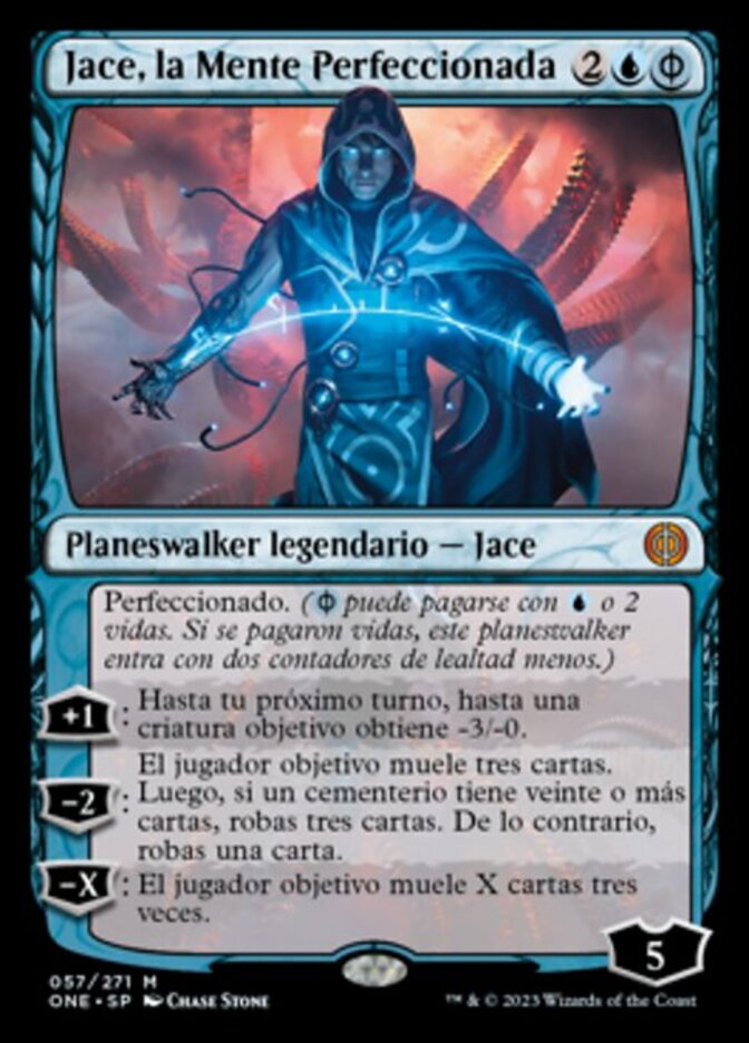 | Rules | Compleated ( can be paid with or 2 life. If life was paid, this planeswalker enters with two fewer loyalty counters.) +1: Until your next turn, up to one target creature gets -3/-0. −2: Target player mills three cards. Then if a graveyard has twenty or more cards in it, you draw three cards. Otherwise, you draw a card. −X: Target player mills three times X cards. |