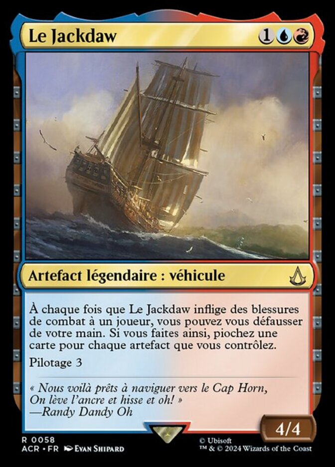 | Rules | Whenever Jackdaw deals combat damage to a player, you may discard your hand. If you do, draw a card for each artifact you control. Crew 3 |