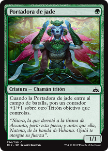 | Rules | When Jade Bearer enters the battlefield, put a +1/+1 counter on another target Merfolk you control. |