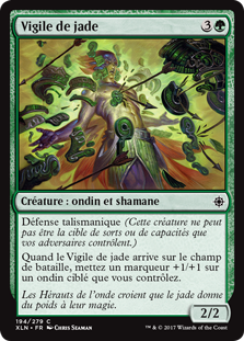 | Rules | Hexproof (This creature can't be the target of spells or abilities your opponents control.) When Jade Guardian enters the battlefield, put a +1/+1 counter on target Merfolk you control. |
