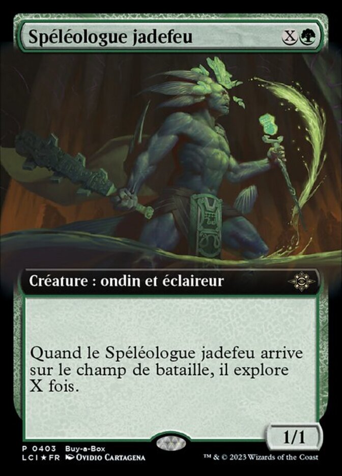 | Rules | When Jadelight Spelunker enters the battlefield, it explores X times. (To have it explore, reveal the top card of your library. Put that card into your hand if it's a land. Otherwise, put a +1/+1 counter on that creature, then put the card back or put it into your graveyard.) |