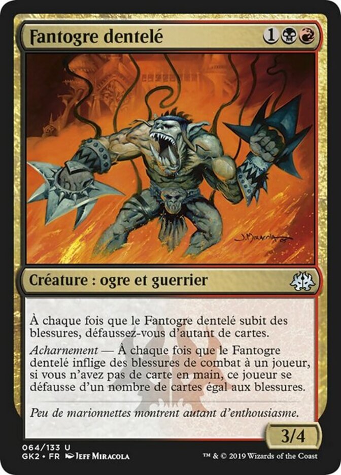 | Rules | Whenever Jagged Poppet is dealt damage, discard that many cards. Hellbent — Whenever Jagged Poppet deals combat damage to a player, if you have no cards in hand, that player discards cards equal to the damage. |