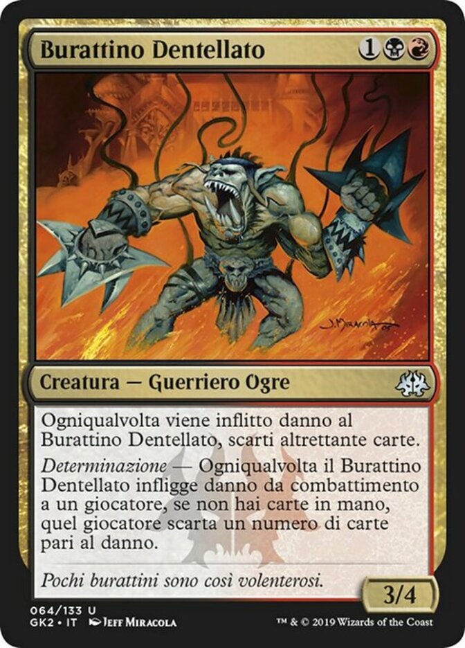 | Rules | Whenever Jagged Poppet is dealt damage, discard that many cards. Hellbent — Whenever Jagged Poppet deals combat damage to a player, if you have no cards in hand, that player discards cards equal to the damage. |