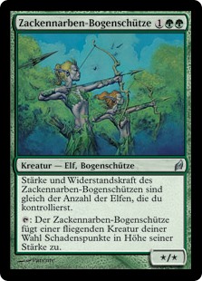 | Rules | Jagged-Scar Archers's power and toughness are each equal to the number of Elves you control. : Jagged-Scar Archers deals damage equal to its power to target creature with flying. |