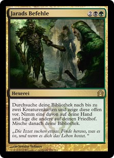 | Rules | Search your library for up to two creature cards and reveal them. Put one into your hand and the other into your graveyard. Then shuffle. |
