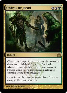 | Rules | Search your library for up to two creature cards and reveal them. Put one into your hand and the other into your graveyard. Then shuffle. |