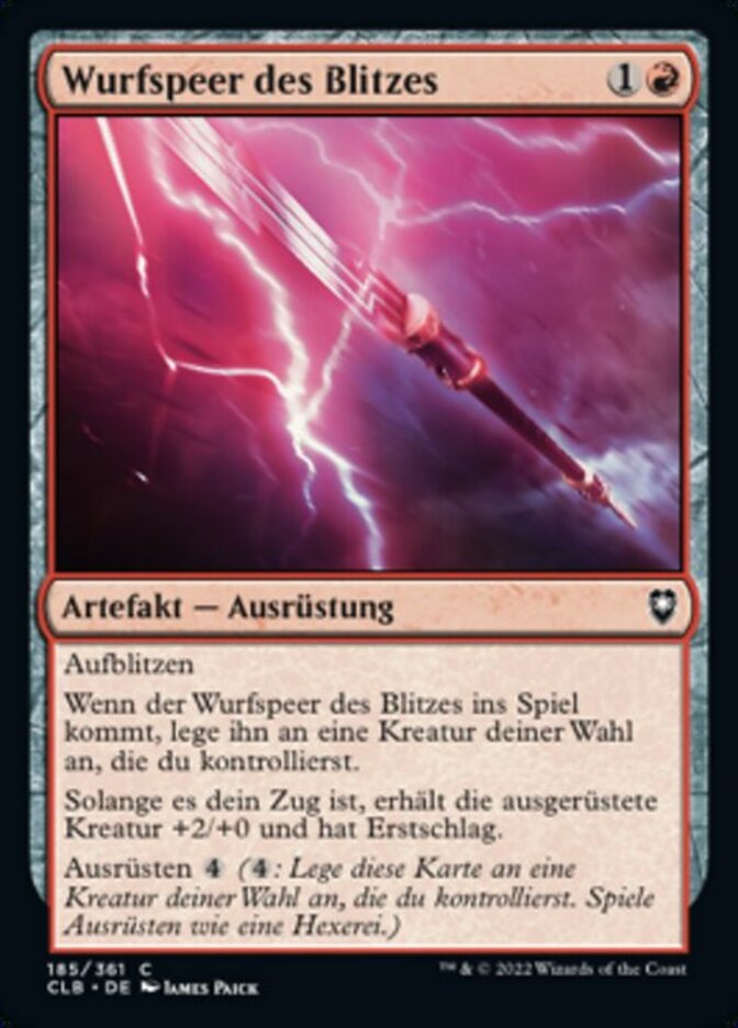| Rules | Flash When Javelin of Lightning enters the battlefield, attach it to target creature you control. As long as it's your turn, equipped creature gets +2/+0 and has first strike. Equip (: Attach to target creature you control. Equip only as a sorcery.) |