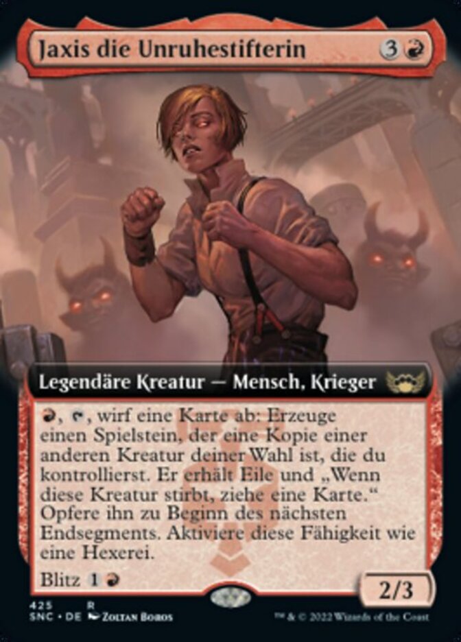 | Rules | , , Discard a card: Create a token that's a copy of another target creature you control. It gains haste and "When this creature dies, draw a card." Sacrifice it at the beginning of the next end step. Activate only as a sorcery. Blitz (If you cast this spell for its blitz cost, it gains haste and "When this creature dies, draw a card." Sacrifice it at the beginning of the next end step.) |