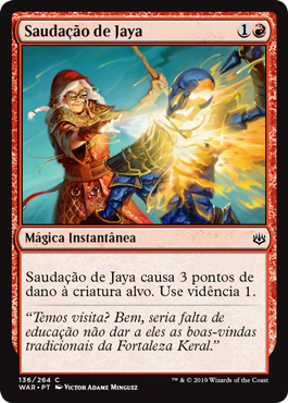 Rules Jaya's Greeting deals 3 damage to target creature. Scry 1.