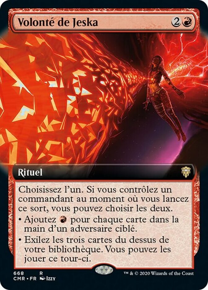 | Rules | Choose one. If you control a commander as you cast this spell, you may choose both. • Add for each card in target opponent's hand. • Exile the top three cards of your library. You may play them this turn. |