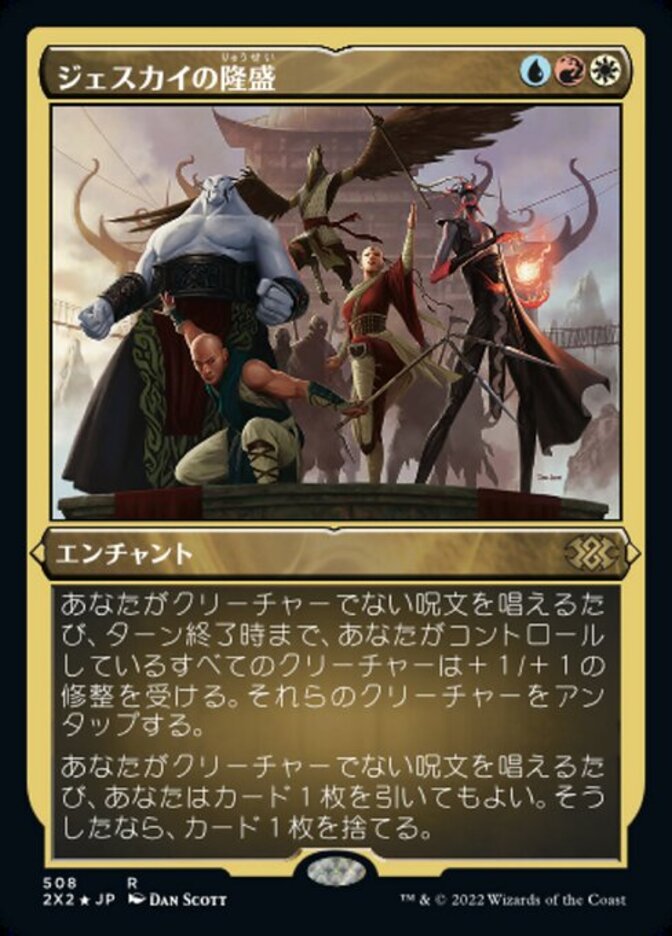 | Rules | Whenever you cast a noncreature spell, creatures you control get +1/+1 until end of turn. Untap those creatures. Whenever you cast a noncreature spell, you may draw a card. If you do, discard a card. |