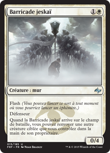 | Rules | Flash (You may cast this spell any time you could cast an instant.) Defender When Jeskai Barricade enters the battlefield, you may return another target creature you control to its owner's hand. |