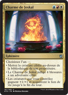 | Rules | Choose one — • Put target creature on top of its owner's library. • Jeskai Charm deals 4 damage to target opponent or planeswalker. • Creatures you control get +1/+1 and gain lifelink until end of turn. |