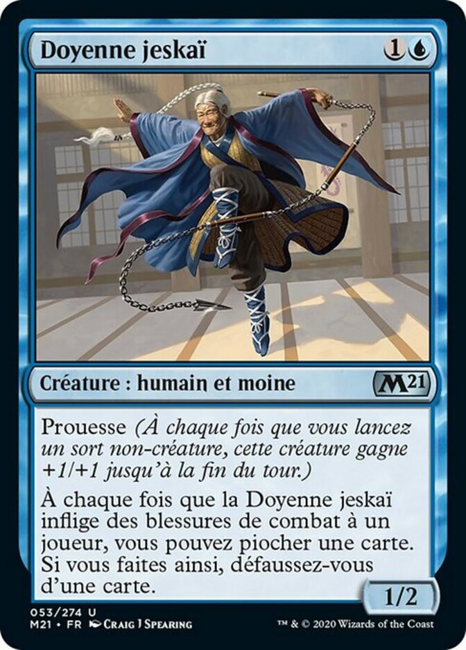 | Rules | Prowess (Whenever you cast a noncreature spell, this creature gets +1/+1 until end of turn.) Whenever Jeskai Elder deals combat damage to a player, you may draw a card. If you do, discard a card. |