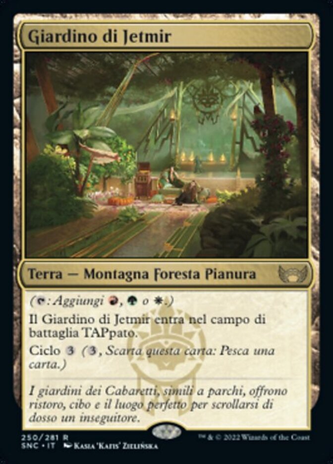 | Rules | (: Add , , or .) Jetmir's Garden enters the battlefield tapped. Cycling (, Discard this card: Draw a card.) |