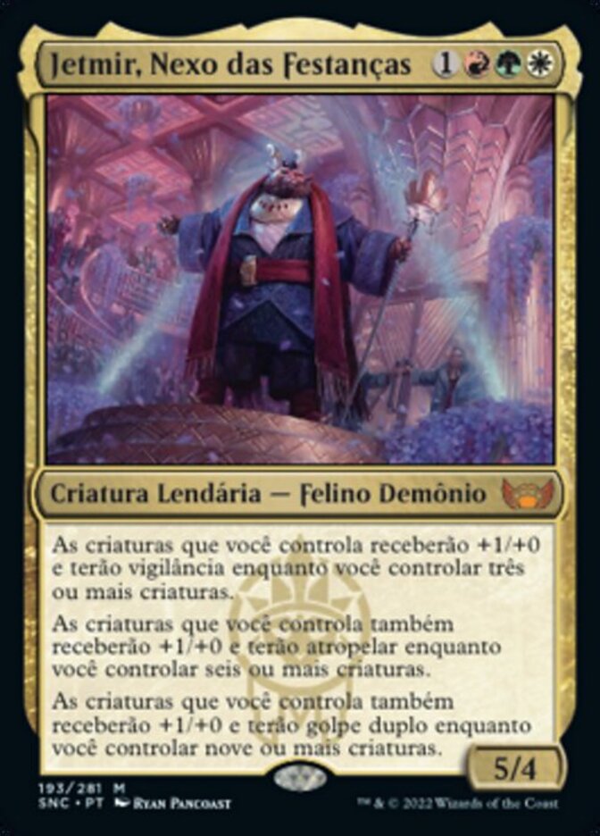 | Rules | Creatures you control get +1/+0 and have vigilance as long as you control three or more creatures. Creatures you control also get +1/+0 and have trample as long as you control six or more creatures. Creatures you control also get +1/+0 and have double strike as long as you control nine or more creatures. |
