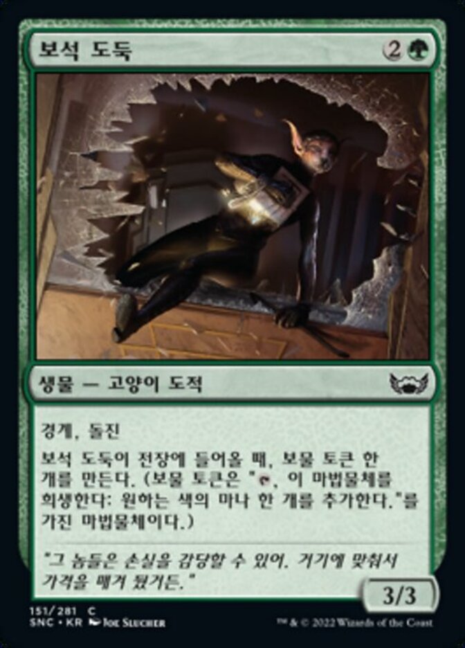 | Rules | Vigilance, trample When Jewel Thief enters the battlefield, create a Treasure token. (It's an artifact with ", Sacrifice this artifact: Add one mana of any color.") |