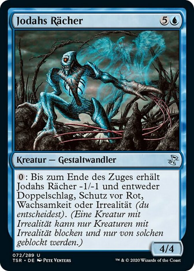 | Rules | : Until end of turn, Jodah's Avenger gets -1/-1 and gains your choice of double strike, protection from red, vigilance, or shadow. (A creature with shadow can block or be blocked by only creatures with shadow.) |