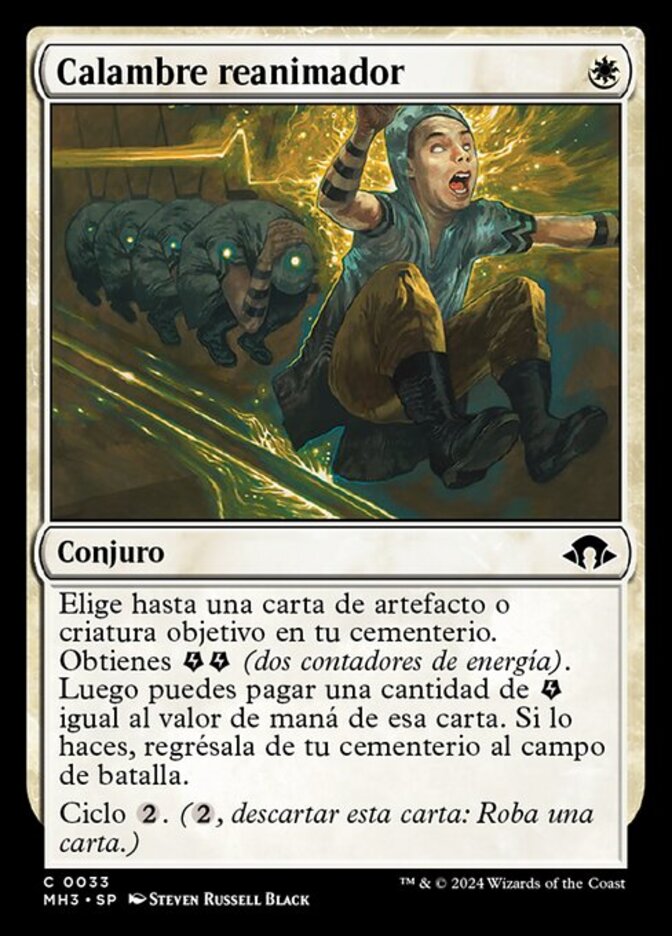 | Rules | Choose up to one target artifact or creature card in your graveyard. You get (two energy counters). Then you may pay an amount of equal to that card's mana value. If you do, return it from your graveyard to the battlefield. Cycling (, Discard this card: Draw a card.) |