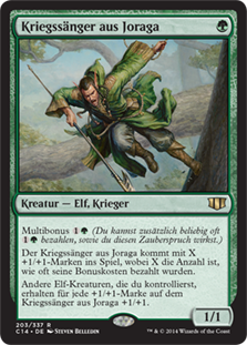| Rules | Multikicker (You may pay an additional any number of times as you cast this spell.) Joraga Warcaller enters the battlefield with a +1/+1 counter on it for each time it was kicked. Other Elf creatures you control get +1/+1 for each +1/+1 counter on Joraga Warcaller. |