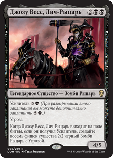 | Rules | Kicker (You may pay an additional as you cast this spell.) Menace When Josu Vess, Lich Knight enters the battlefield, if it was kicked, create eight 2/2 black Zombie Knight creature tokens with menace. |