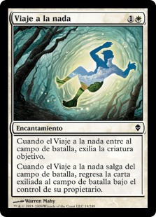 | Rules | When Journey to Nowhere enters the battlefield, exile target creature. When Journey to Nowhere leaves the battlefield, return the exiled card to the battlefield under its owner's control. |