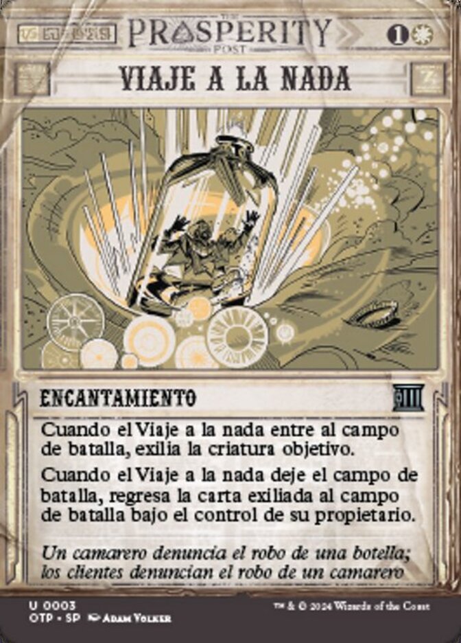 | Rules | When Journey to Nowhere enters the battlefield, exile target creature. When Journey to Nowhere leaves the battlefield, return the exiled card to the battlefield under its owner's control. |