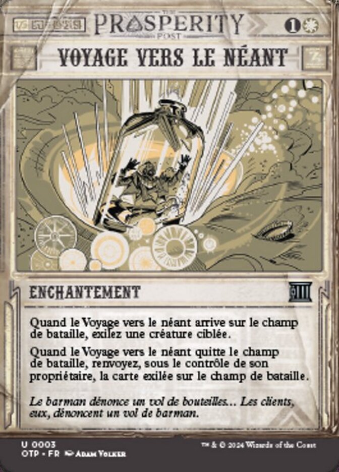 | Rules | When Journey to Nowhere enters the battlefield, exile target creature. When Journey to Nowhere leaves the battlefield, return the exiled card to the battlefield under its owner's control. |