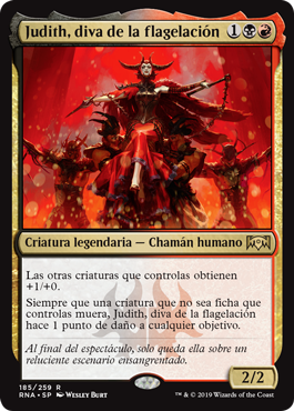 | Rules | Other creatures you control get +1/+0. Whenever a nontoken creature you control dies, Judith, the Scourge Diva deals 1 damage to any target. |