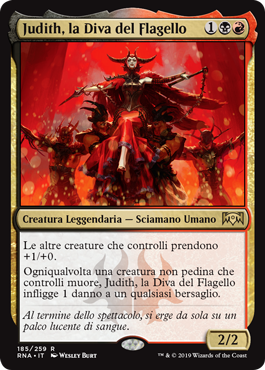 | Rules | Other creatures you control get +1/+0. Whenever a nontoken creature you control dies, Judith, the Scourge Diva deals 1 damage to any target. |