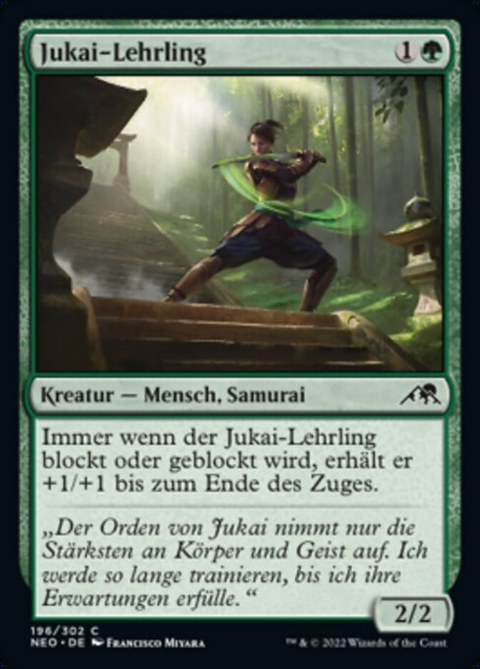| Rules | Whenever Jukai Trainee blocks or becomes blocked, it gets +1/+1 until end of turn. |