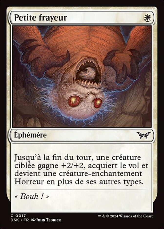 | Rules | Until end of turn, target creature gets +2/+2, gains flying, and becomes a Horror enchantment creature in addition to its other types. |