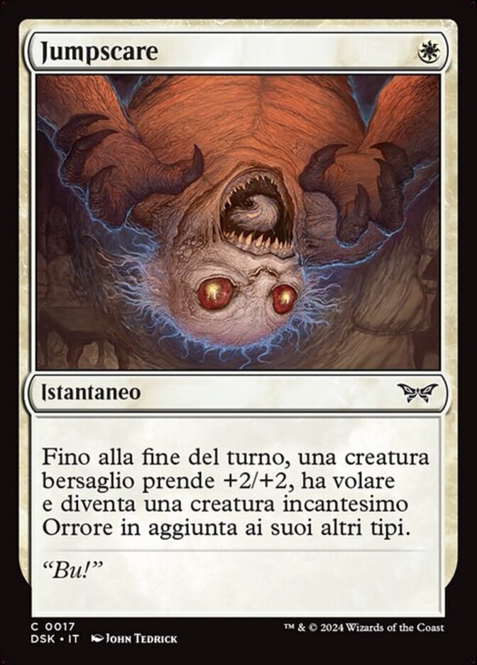 | Rules | Until end of turn, target creature gets +2/+2, gains flying, and becomes a Horror enchantment creature in addition to its other types. |
