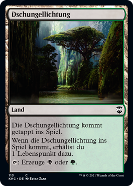 | Rules | Jungle Hollow enters the battlefield tapped. When Jungle Hollow enters the battlefield, you gain 1 life. : Add or . |