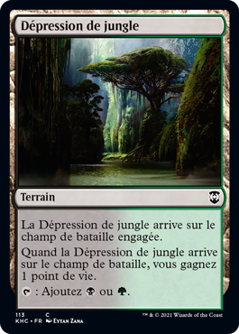 | Rules | Jungle Hollow enters the battlefield tapped. When Jungle Hollow enters the battlefield, you gain 1 life. : Add or . |