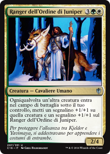 | Rules | Whenever another creature enters the battlefield under your control, put a +1/+1 counter on that creature and a +1/+1 counter on Juniper Order Ranger. |